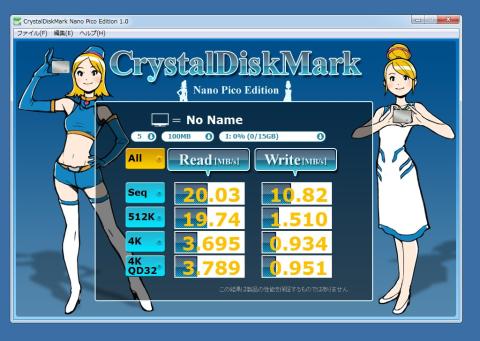 シーケンシャル書き込みが規格値ギリギリの10MB/sくらいとなりました。
