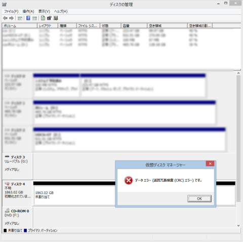 TBクラスのHDDの初期化(領域確保)ができなくCRCエラーをはく件ですが、