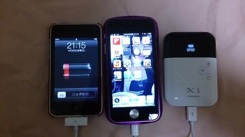IPHONE5、L-04D、IPODTOUCHを充電。