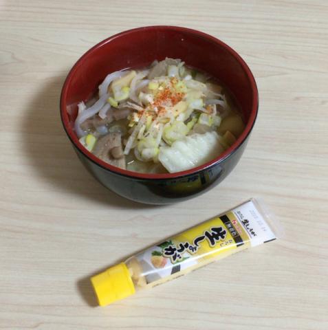 「イカ刺しを食べる時に使う」とか「カレーの下ごしらえに」とかありますが、一番ポピュラーなのは「豚汁に入れる」です。