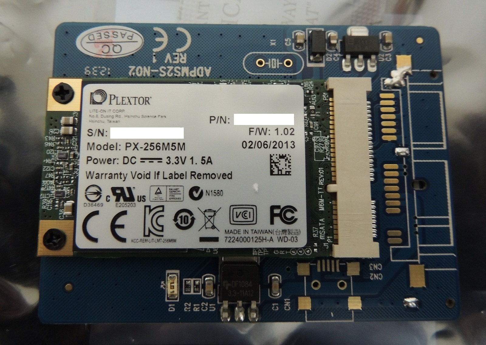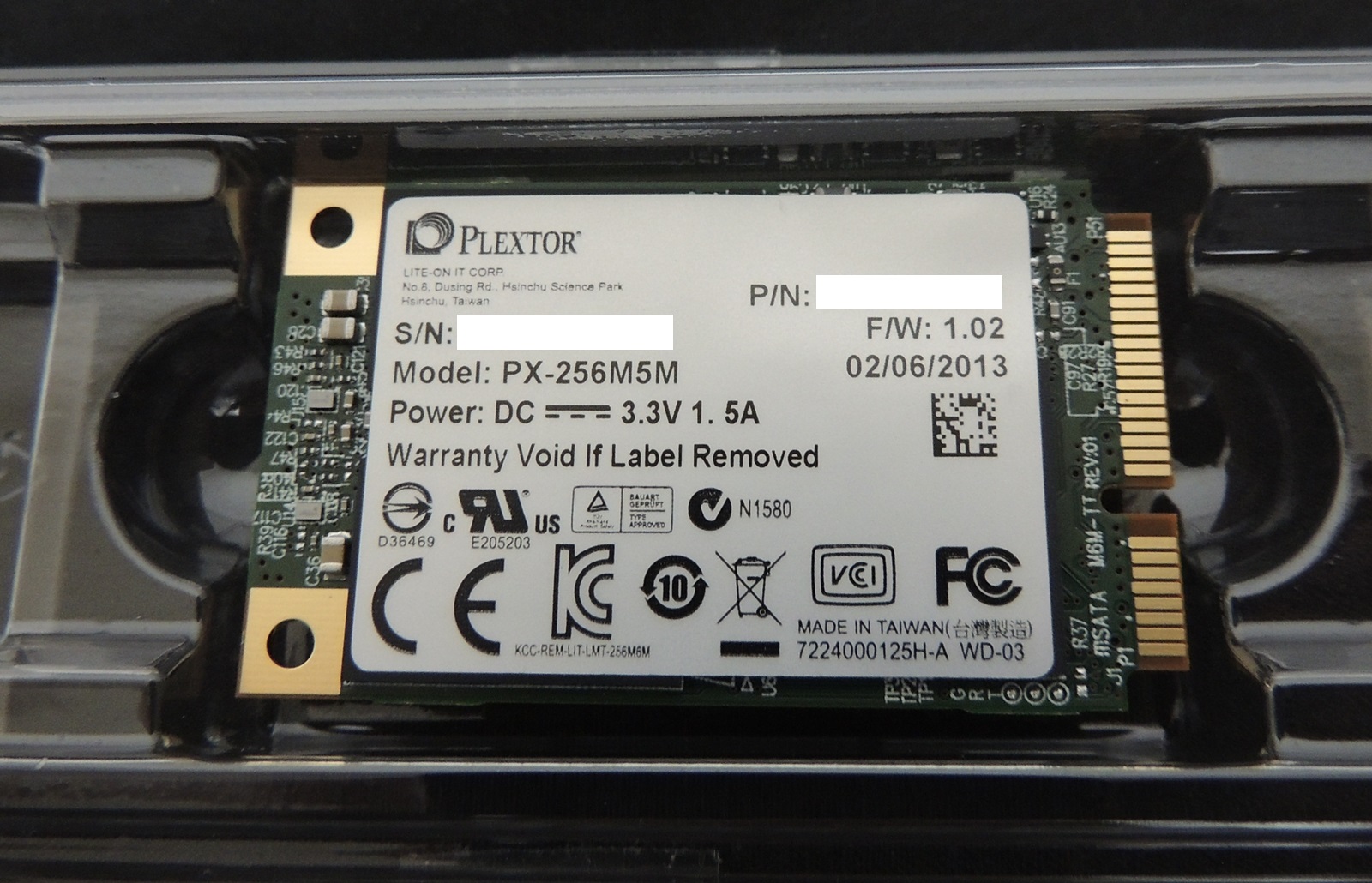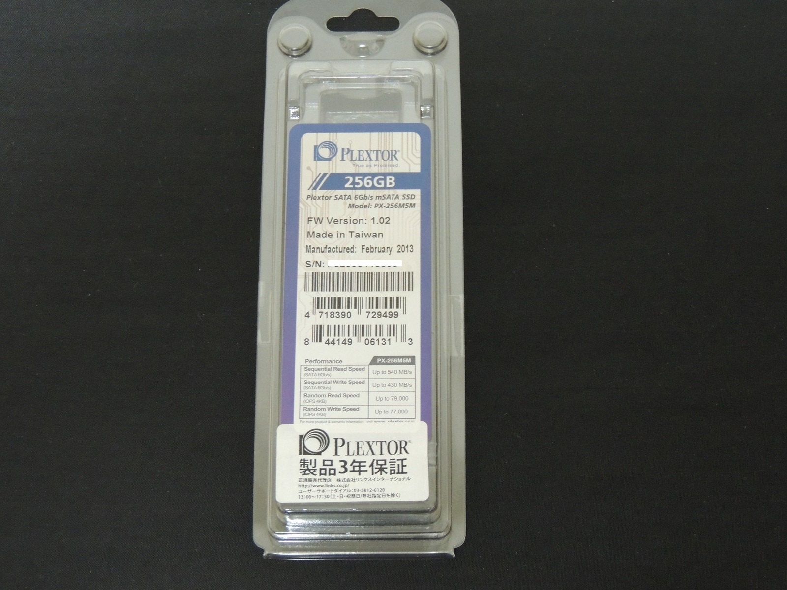 Plextor(Liteon)製のmSATA-SSDの最新モデル。容量は256GB。