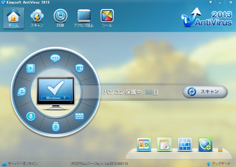 KINGSOFT Internet Security2013は、アンチウイルス、システムディフェンダーをひとつにまとめた完全無料のセキュリティソフトで、無料で使えるアンチウイルスソフトです。