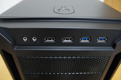 フロントのアクセスポートは、オーディオに、USB2.0×2、USB3.0×2という構成です。電源ランプ、アクセスランプ共にブルーLEDとなってます。