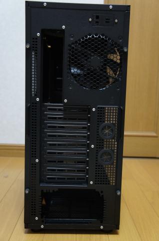リアには、標準で12㎝ファンが搭載されています。XL-ATX対応ということで、拡張スロットは9つ搭載されています。