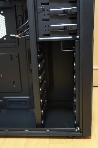ケース内部です。ケーブルの取り回しをしやすくするために、多くのサービルホールを設けいています。