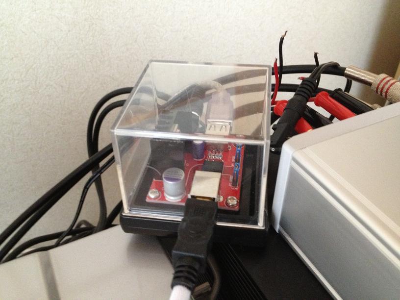 PC側からのUSBの5V給電は回路上カットされ、音声信号のみ通過します。