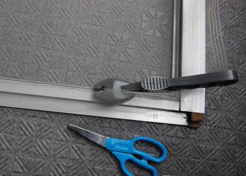 網戸張は網を張って、ゴムで止めますが、そのゴムギリギリで如何に網を切るかが重要です