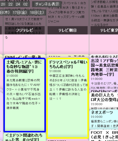無事に予約完了すると番組タイトルを予約した印として色の付いた枠線で囲まれます。