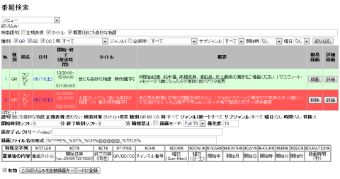 epgrec は特定のジャンルに特化しているわけではなく、幅広く録画予約が可能となっています。
