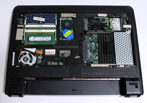 内蔵HDDは、SSDに換装されていましたがこの機種は7mm厚のHDD/SSDしか実装できないため、SSDはケースから取り出されて実装されていました。