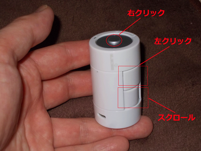 見ての通り上部に右クリック、側面に左クリックとスクロール