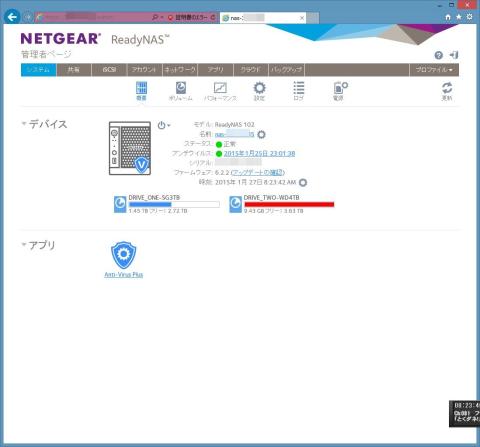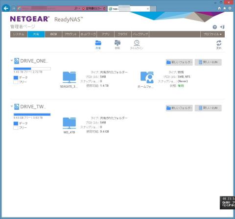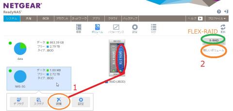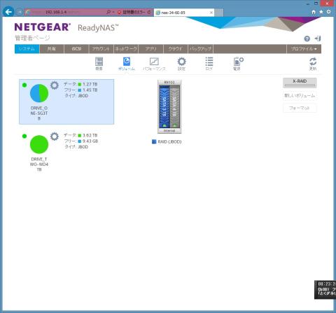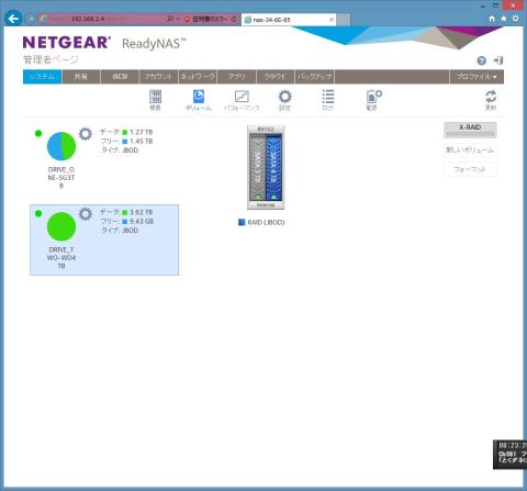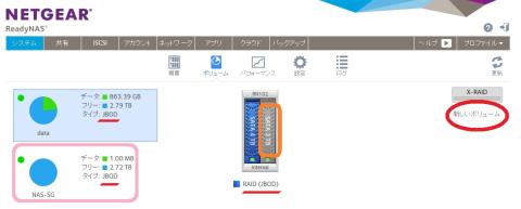 NETGEAR独自のX-RAID2ではHDD4台でも、1ボリュームになるんですね