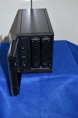 10/100/1000ポートx1、 USB3.0 x2、 USB2.0 x1、 eSATA x1、 2.5inchと3.5inch SSD/SATAに対応。本体3年保証。