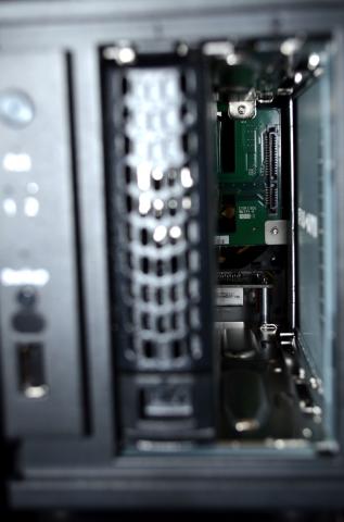 後部 USB3.0 , ESATA, LAN, RESET SW 、排気FANが見えます