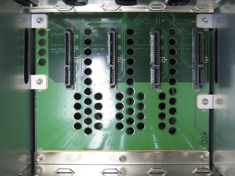 本体のドライブベイ奥にはSATAコネクター+電源コネクターが並ぶシンプルなものです。