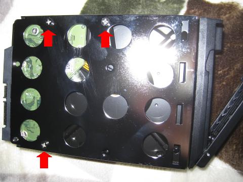 HDDのネジ穴にブラケットのボッチをハメブラケットを元に戻します。