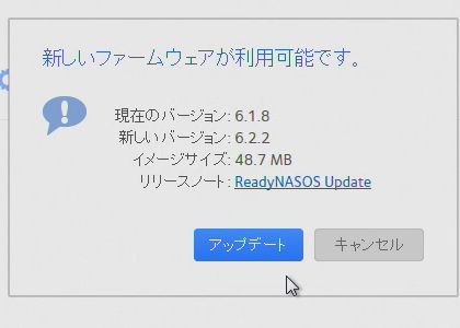 初期設定を適用すると次に新しいファームウェアのメッセージが表示されました。