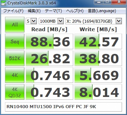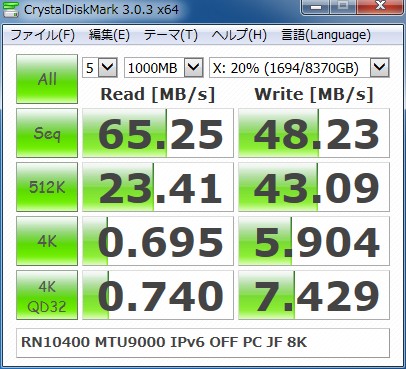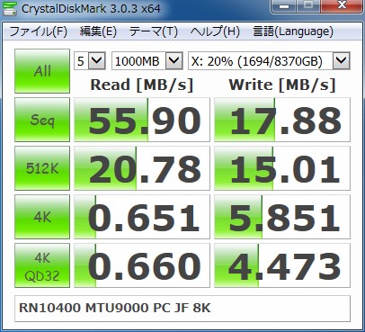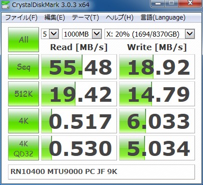 そんな訳でPCのジャンボフレームは9K、NASのMTUを最大の9000に設定の結果を