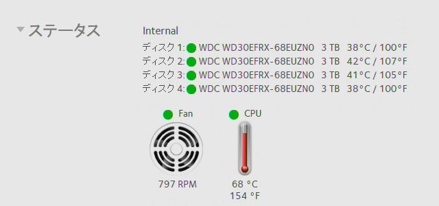 再構築中は時間的に長いし負荷も高いと思いステータスで温度をモニタリング。