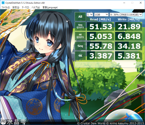 CrystalDiskMarkのベンチマーク結果は以下のとおりです。
