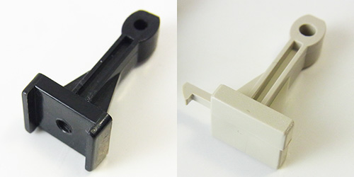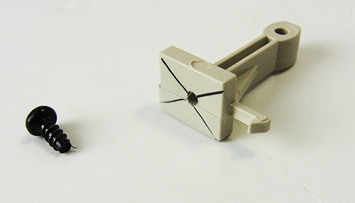 このままではどちらもグラグラしてよろしくない。そこで見つけたのがこの保守部品…なのだが、正式な対応品ではなく、受け手側はそのまま使えるものの、棒側は固定方法が異なる。