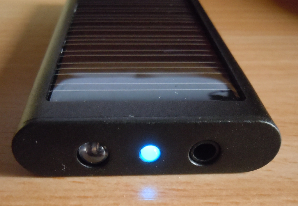 USBによる充電でも青く光りますが、満充電になるとソーラーパネルからの発電量がない限りLEDは消灯します。