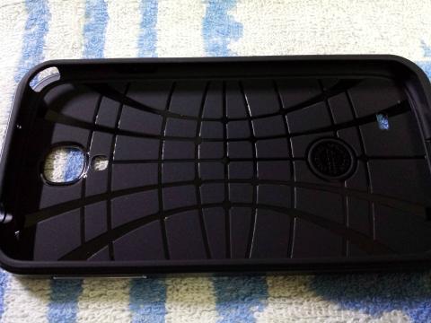このケースの裏には、衝撃分散用と思われる、模様も入っています。