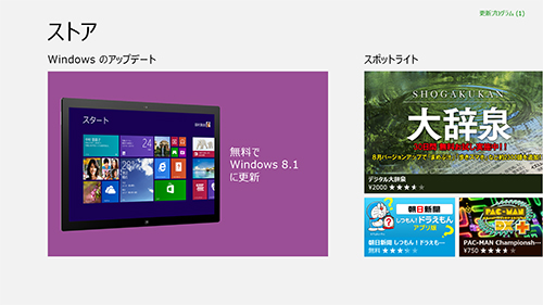 手順は他のWindows8機をアップするのと同じ。ストアからWindows8.1をダウンロードするだけ…なのだけど、WindowsUpdateはしておくほうがいい。また、ストアアプリが最新版でないと8.1のダウンロードメニュー自体が出てこない。