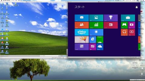 左がXP、そして右が8.1となっています。8.1のスタート画面は正直言って面食らいます。Winキーを押すと出てくるものがスタート画面というのはどうしても慣れません。それでもMacのMagic Trackpadでスクロールするのはちょっと気持ち良い感じではあります。