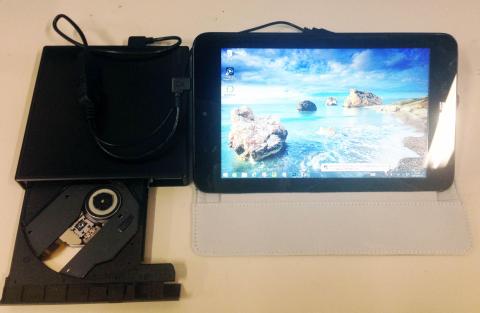 (残念ながらVivoTab Note 8ではバスパワーでDVDプレイヤーは動きません、Surface Pro では動くので、単に電力が足りない模様、給電が必要です)