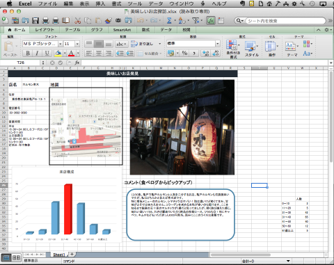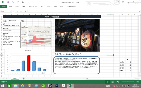 では、スプレッドシートはどうでしょうか、こちらは、セルの結合、基本図形の挿入、図形内の文字の流し込み、テキストボックス、写真の挿入、グラフの挿入、などを使っています、マクロとかは使いません、ほぼ一般的な帳票だと思っていただければ間違いないでしょう