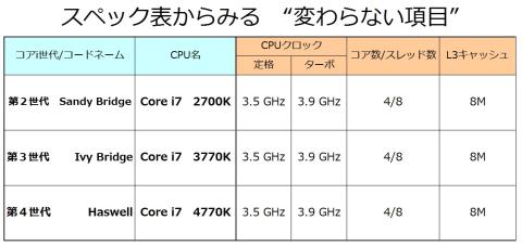 同じ1155ソケットで使えるのに(マザーボードが流用できる)corei7-3770Kへと移行しなかったのは“スペック的に違いがそんなにない?”と感じたのが大きな理由でした。