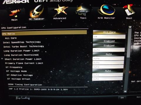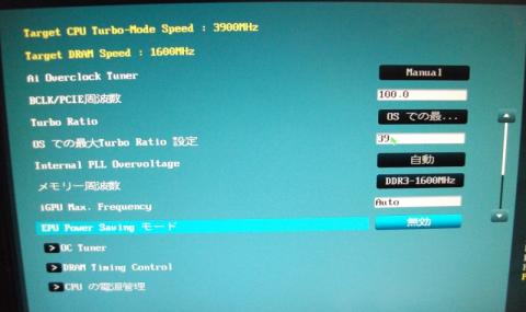 4770KのTB上限である3.9GHzにCPU倍率を設定。