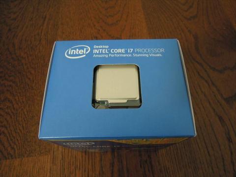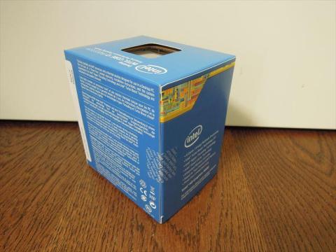 上半分は一目見てintel製CPUだとわかるおなじみのパッケージ。青を基調とし、ダイをイメージした黄色いポイントが入った物だ。