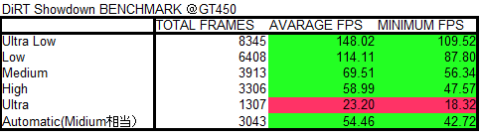 スコアはDiRT Showdownのベンチマークモードで取得した。