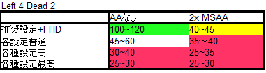 従って、HD4600はLeft 4 dead 2においてAAをかけずにテクスチャ品質も抑えれば"使える!"と言えるだろう。