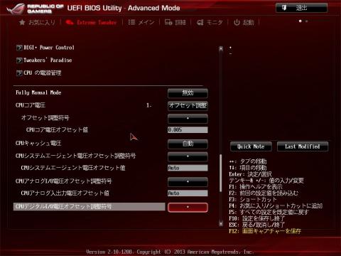 電圧設定は、倍率変更と同じオフセットで「+0.005」上昇させた状態です。