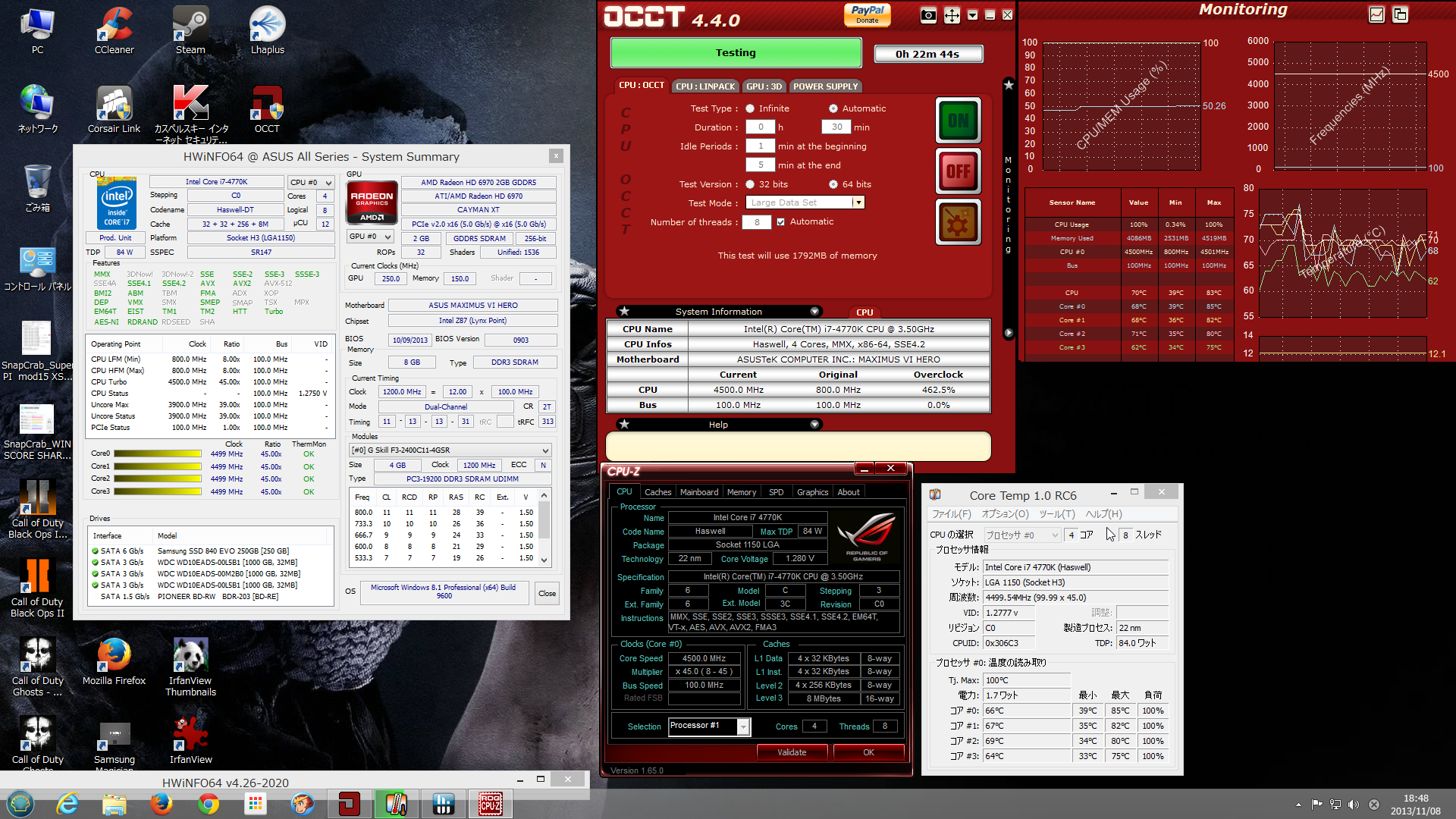 使用したマザーASUS MAXIMUS VI HeroはLLCの設定が1~8までありますが、8に設定したところOCCTも二時間パスできました。
