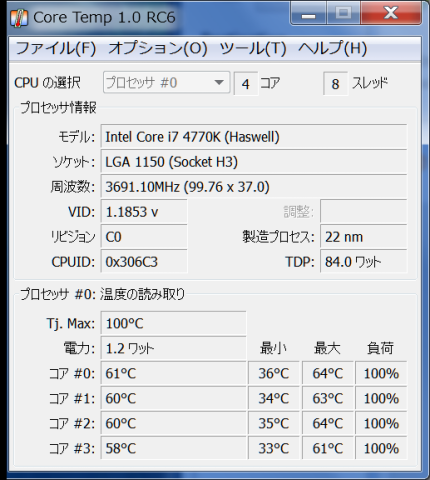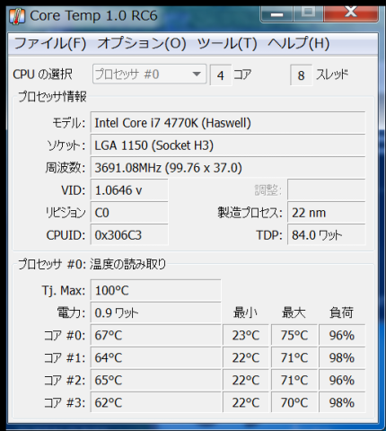 4770Kは定格の場合、最大3.5GHzです。アップされている写真を見る限り191MHzオーバークロックされています。