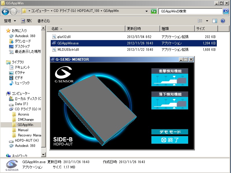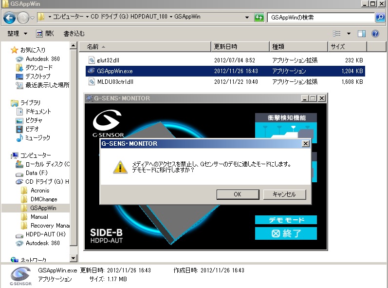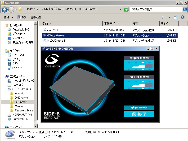○気になったのはGセンサーが壊れたとき仮想ドライブはどのような挙動を示すのかということである。センサーが壊れたためにデータにアクセスできないということがありそうで怖い。