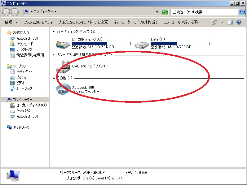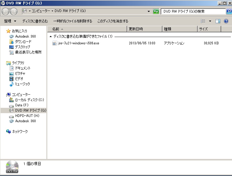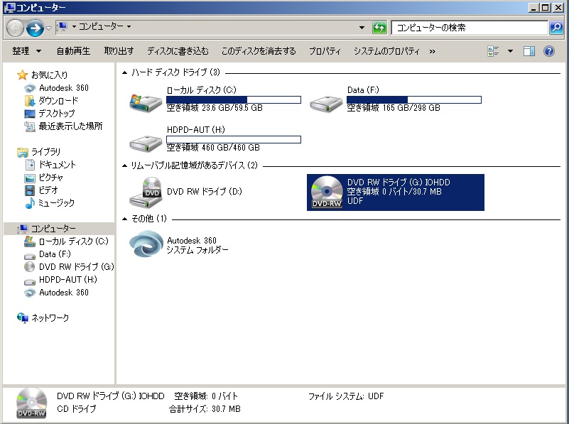 エクスプローラ上でもDVD-RWドライブとして認識しています。
