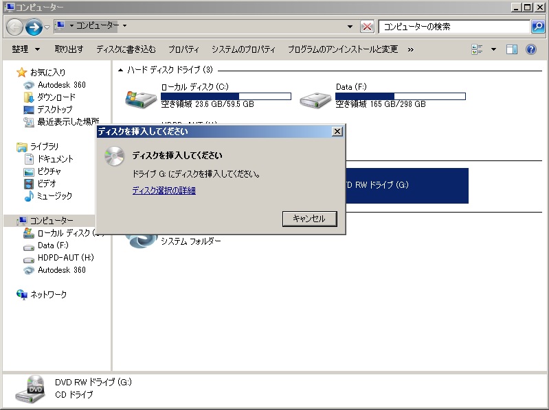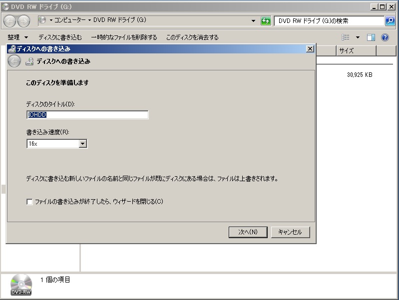 早速書き込んだディスクを見ようとしたところ問題が発生しました。