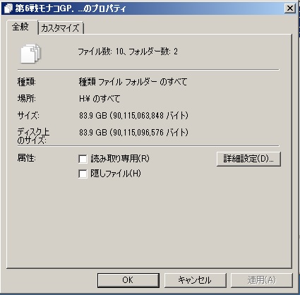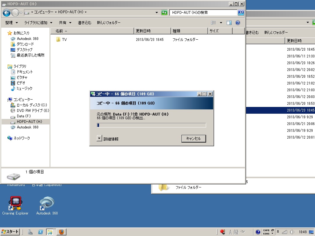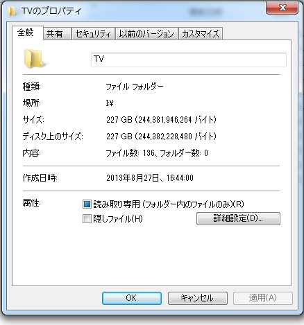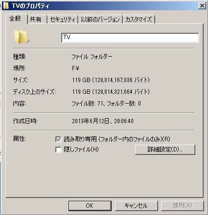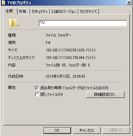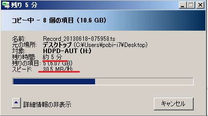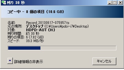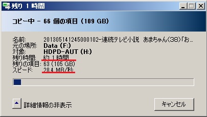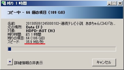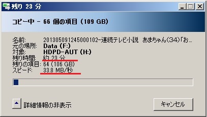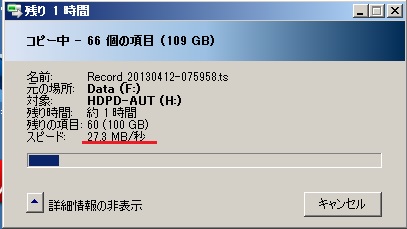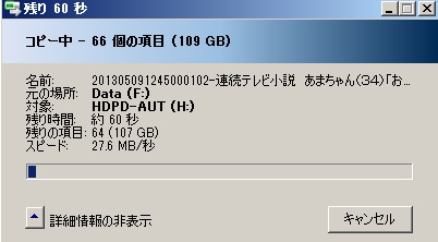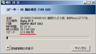 今回はテレビの録画ファイル(109GB)を転送しました。