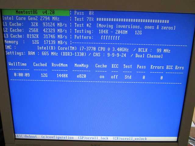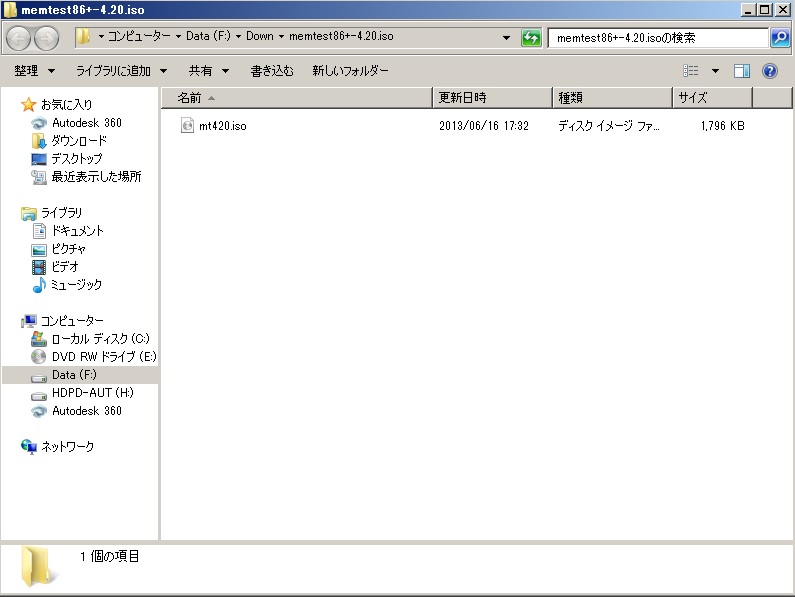 早速isoファイルを仮想ドライブに書き込んでmemtest+86を実行しました。