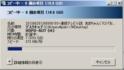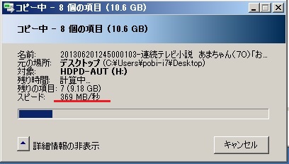 (USB1.1ならどのくらいかかっていたのだろう・・・)