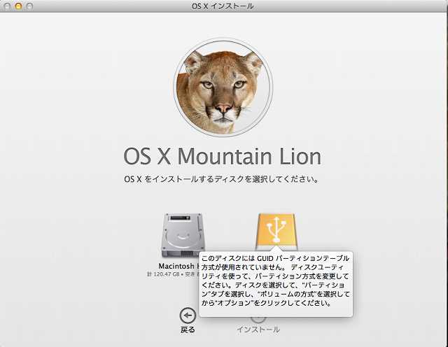 HDDに入っているOS Xが起動したらHDDが使用できると判断します。