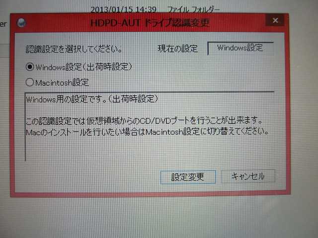 もしかすると最後に動作したモードで認識しているではと思い一度仮想CDドライブモードで認識したあと再度縦置きで認識させましたが仮想DVDドライブモードで認識しました。