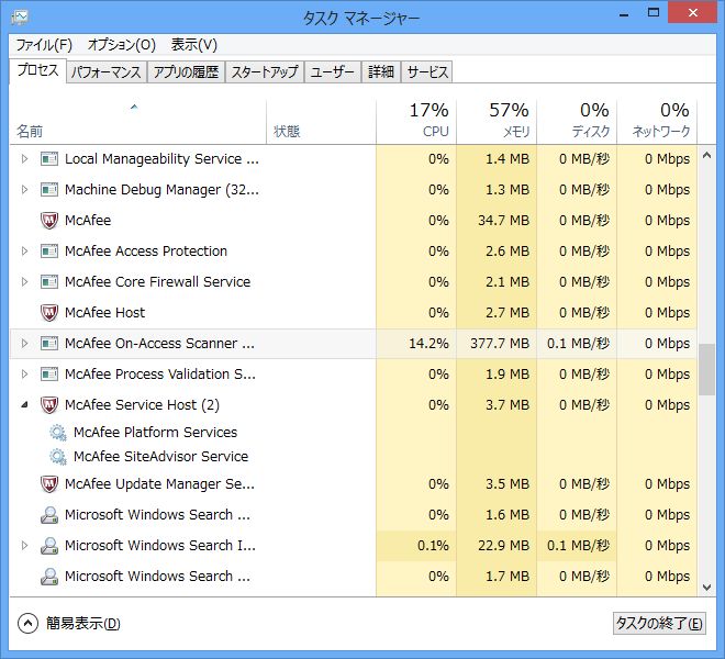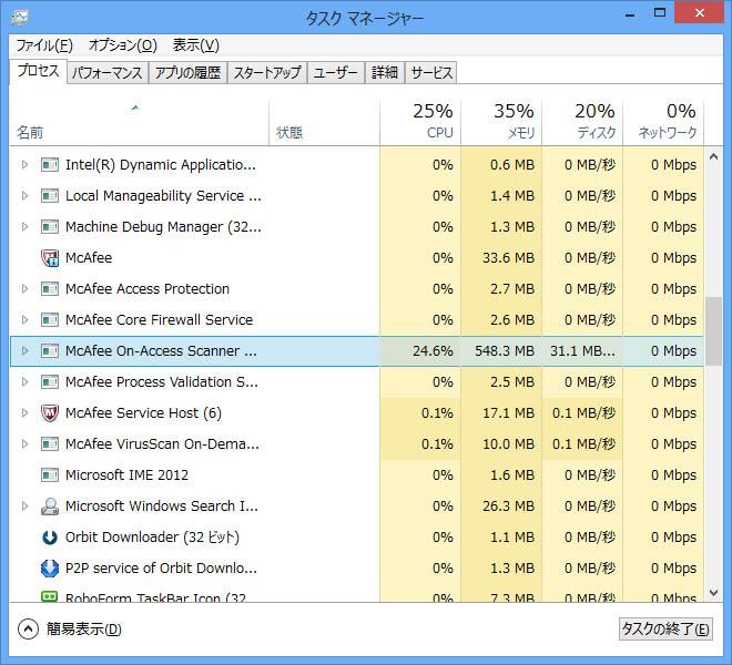 以前からMcAfeeは重いという印象があったのですが、そこはあまり変わっていないようですね。