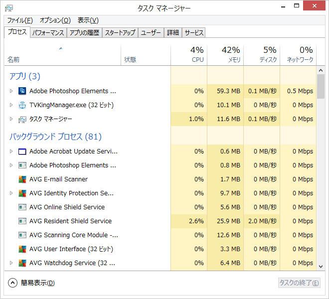 AVG Free 2013 のメモリ使用量は大体こんな感じです。