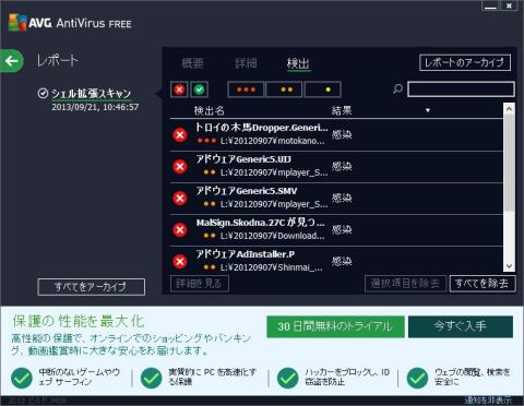 レビュー直前に使用していたのは、AVG Free 2013です。